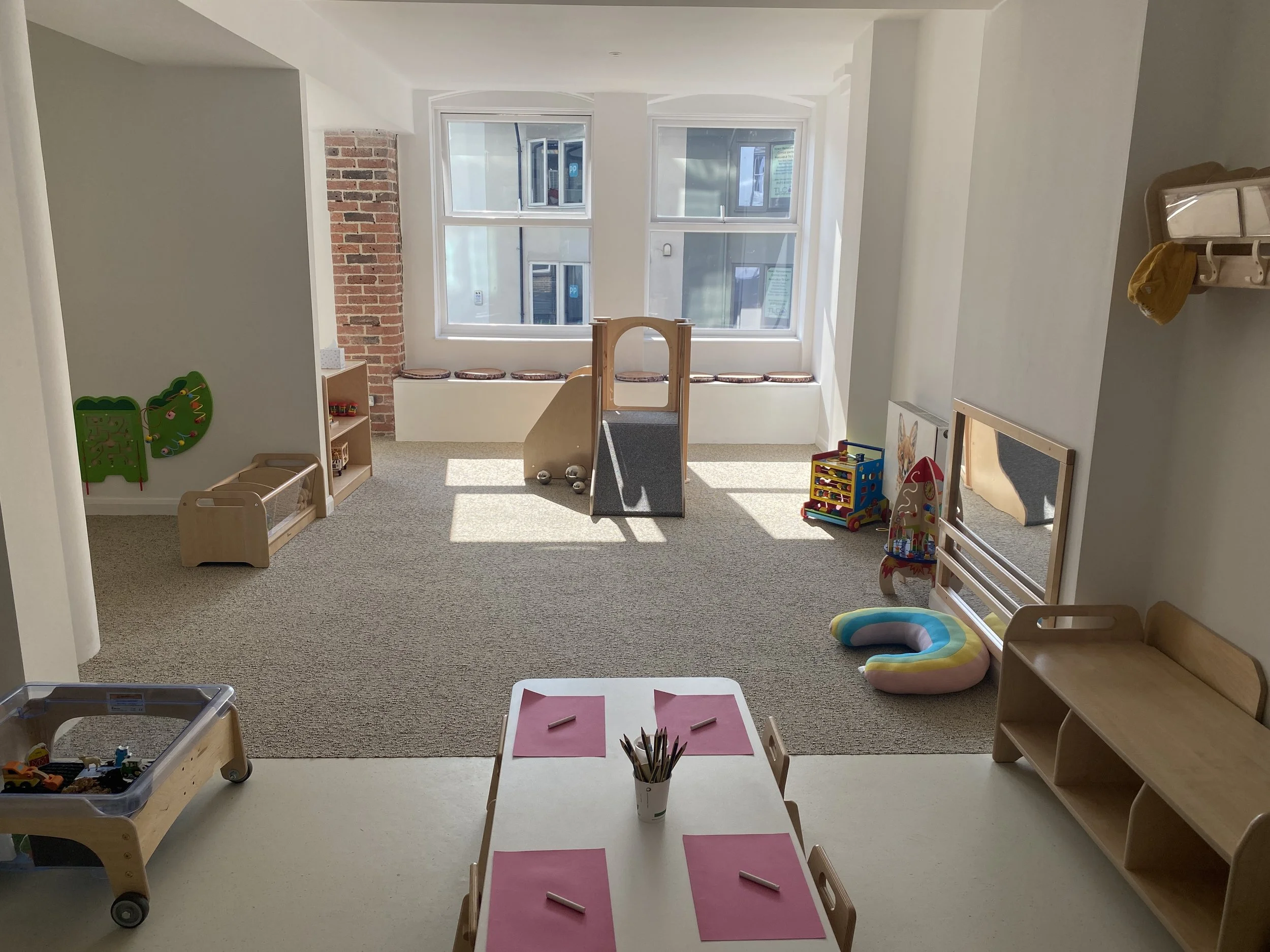 Flooded with natural light and wooden resources to inspire our youngest children. We have a baby gym and messy play area as well as a dedicated sleeping area with soft sensory lighting and white noise to help babies relax and recharge.